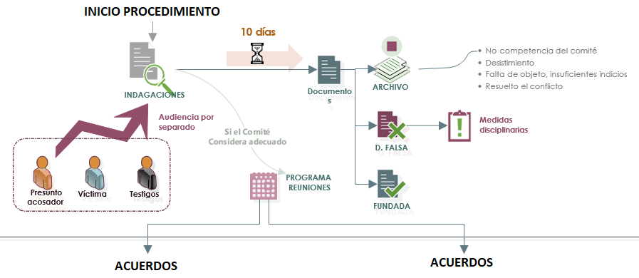 - Imparcialidad: el procedimiento debe garantizar una audiencia imparcial y un tratamiento justo para todas las personas afectadas. Todas las personas que intervengan en el procedimiento actuarán para el esclarecimiento de los hechos denunciados.